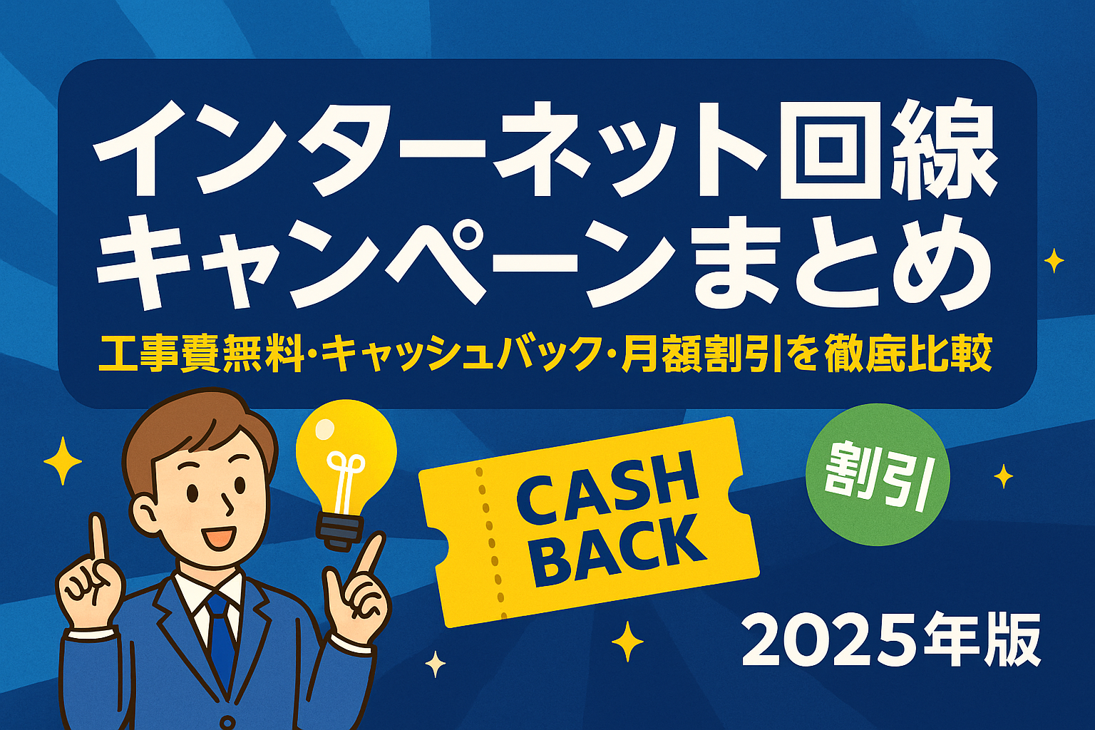 光回線のキャンペーンは工事費無料や高額キャッシュバックが目玉です。