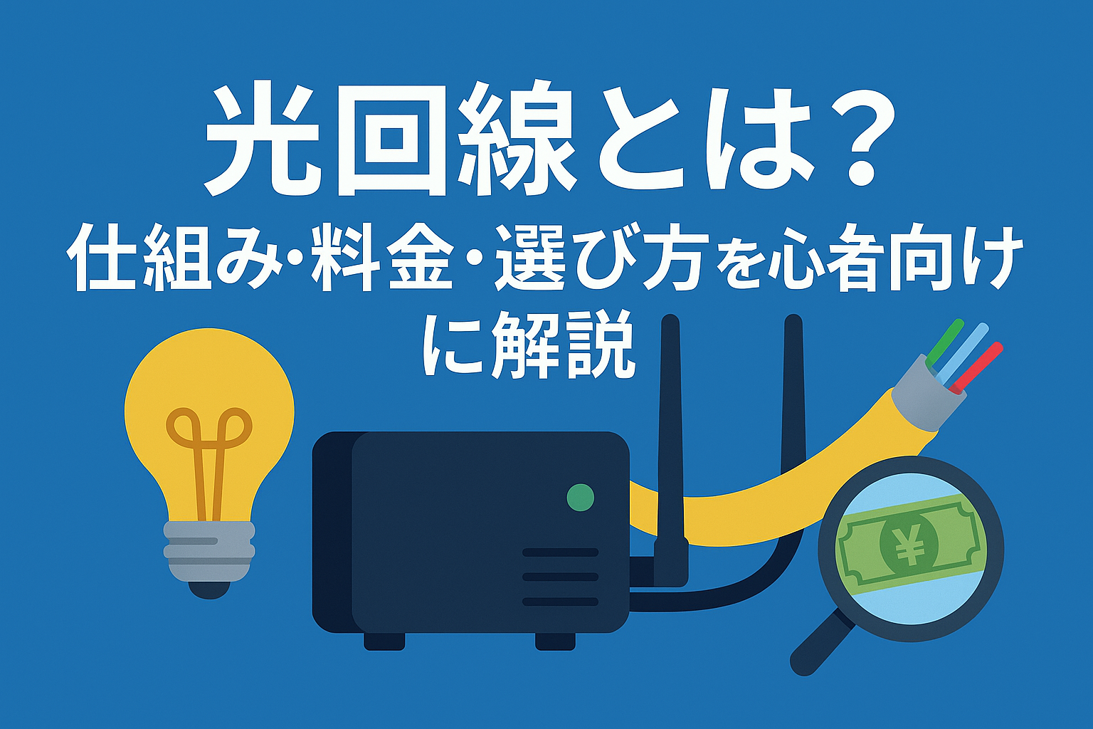 初心者ガイド 光回線とは?仕組み・料金・選び方を初心者向けに解説 光回線の仕組み・料金・選び方を初心者向けに解説。高速で安定したインターネットの特徴や、ホームルーター・ポケットWi-Fiとの違いをわかりやすく紹介します。 2025.10.03 初心者ガイド