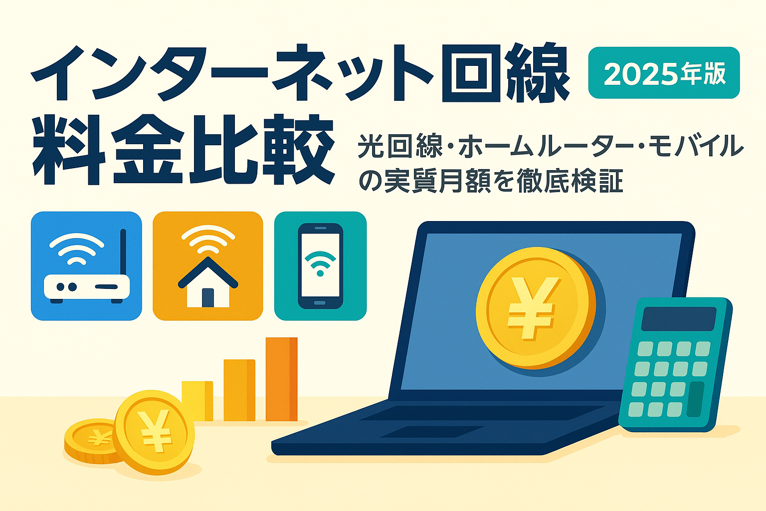 インターネット回線 インターネット回線おすすめランキングTOP5|用途別の最適解【2025年版】 2025年最新のインターネット回線おすすめランキングTOP5を徹底解説。光回線・ホームルーター・ポケットWi-Fiの料金や速度を比較し、用途別の最適解を紹介。 2025.09.18 インターネット回線